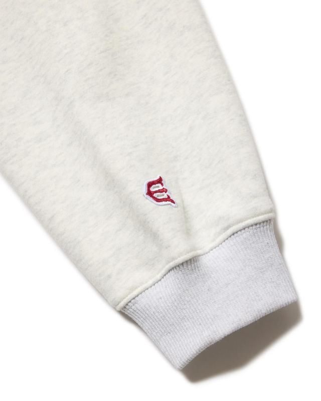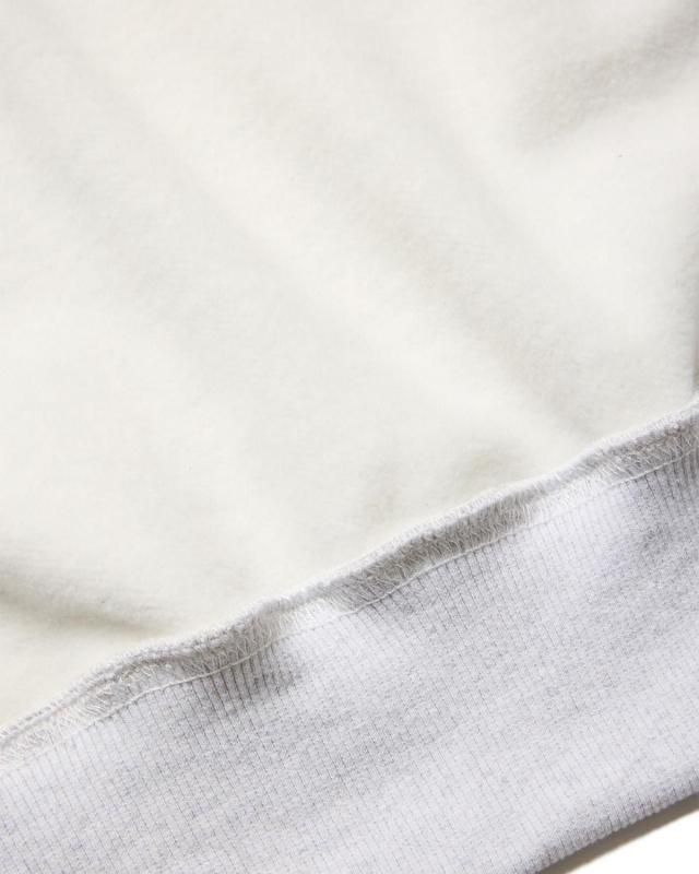 プリントと刺繍でグラフィックを重ねたプルオーバースウェットシャツ。メインに11.2ozの温かな裏起毛生地を使用し、身頃脇下にはリブ素材を使用した切り替えデザイン。ボディーカラー、プリント色、刺繍の色の違いで、それぞれ絶妙な色合いと立体感のある仕上がりです。