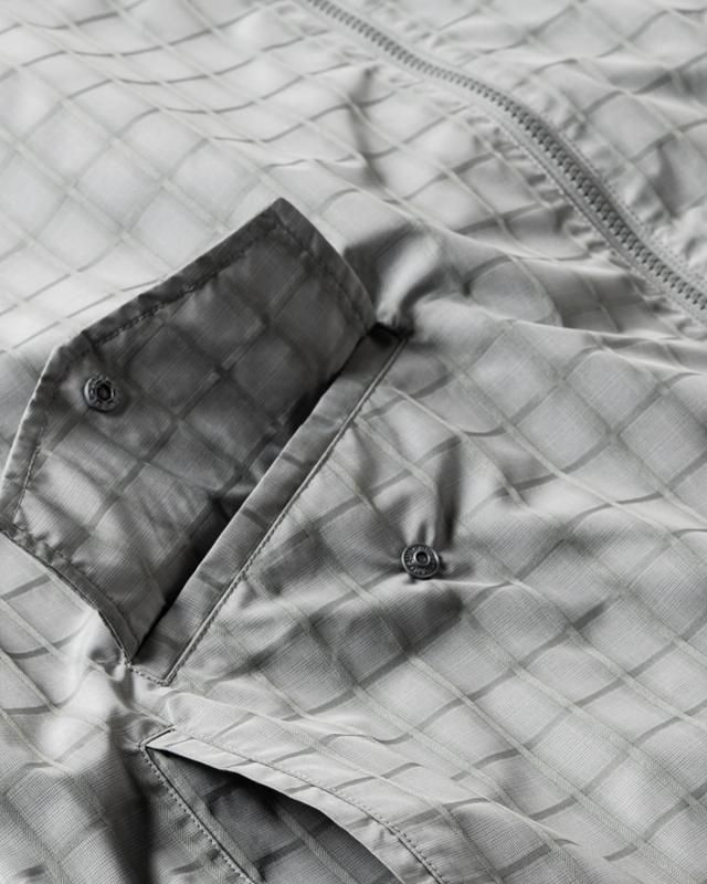 柄に立体感のあるポリエステル生地を使用した1枚モノのライトウェイトジャケット。