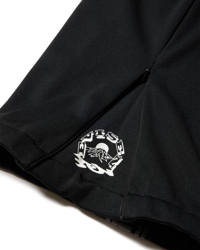 左足裾のマチ付近にもグラフィックプリント入り。セットアップで着られるトラックジャケットと一緒にどうぞ。