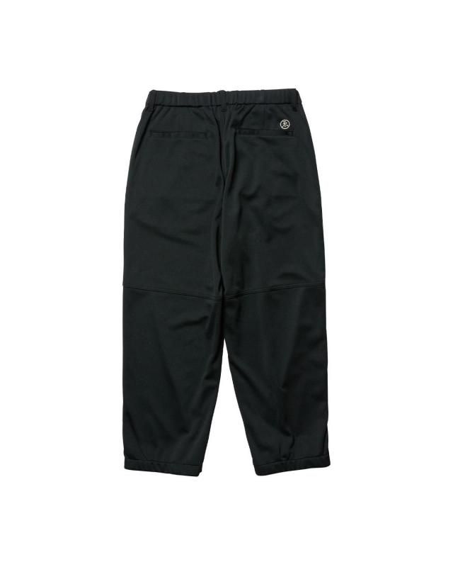 左右のEロゴジャカードテープ横にはスラッシュポケット、後ろにはバックポケット搭載で、右のバックポケット上にはシルバーの“ゑ”刺繍入り。膝裏付近に切り替え付き。裾にはファスナー付きのマチとアジャスター付きドローコードでフィット感の調整が可能です。