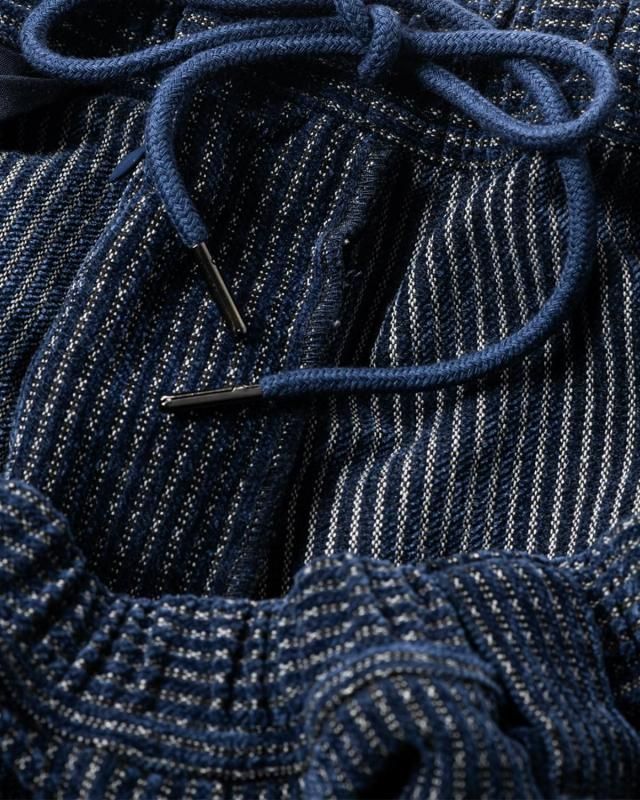 ゴム入りのウエストバンドは、ベルトループと内出しのスピンドルコードを装備。