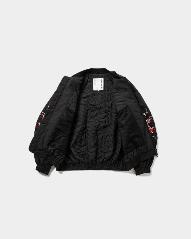 和彫りの「水」を両袖に刺繍で落とし込んだMA-1ジャケット。