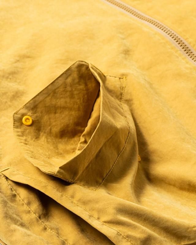 左のポケット下にロゴパッチを配置し、襟元内側にはハンガーループ付き。