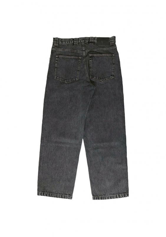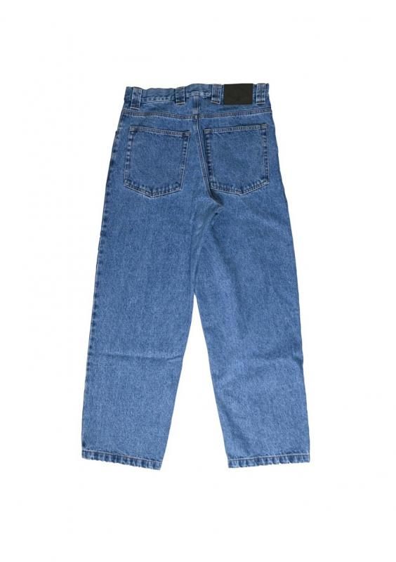 14oz.のしっかりとしたデニム生地を使用した太過ぎないバギーシルエットのデニムパンツ。丈も程良い長さに仕上げ、エンボスレザーパッチ、コインポケットにブランドロゴ